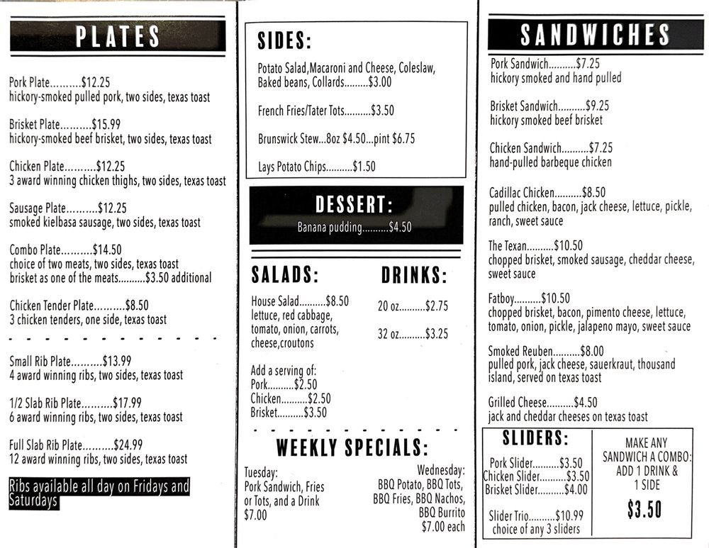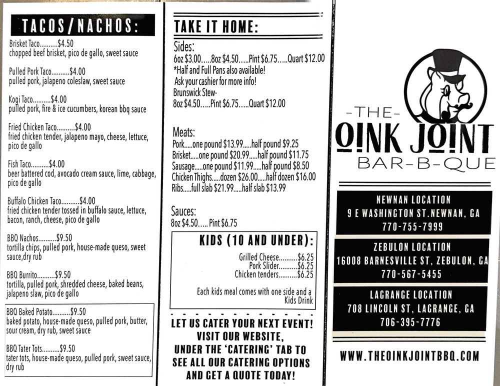 The Oink Joint Barbecue Menu
